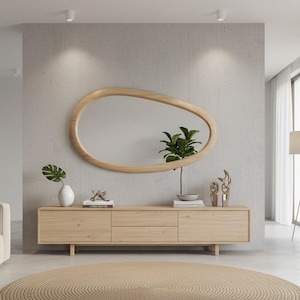 Oval Mirror Made of Wood , White Oak Framed Mirror , Unique Handmade Walnut Mirror , Home Decor Mirror , Asymmetric Mirror with Wooden Frame