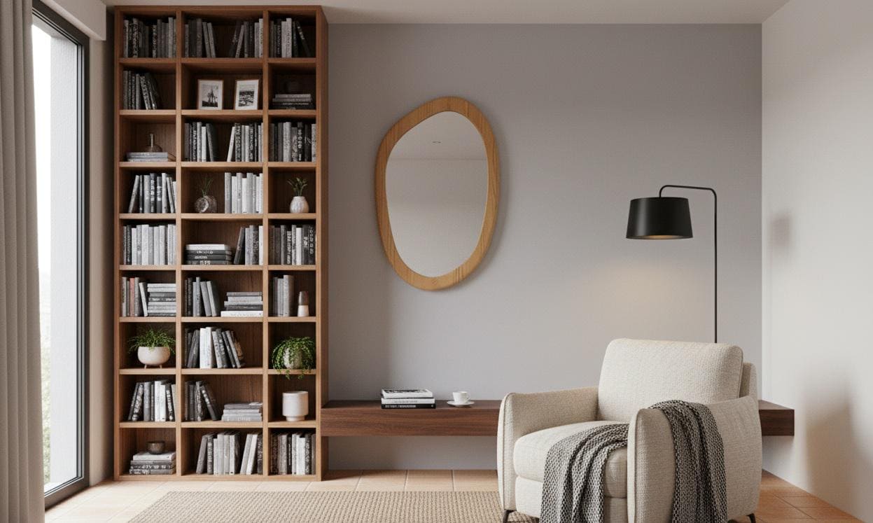 Inspired by the natural curves of stones and tree bark, this handcrafted wooden mirror brings the warmth of nature into your home with its striking organic shape. This mirror is more than just a functional object — it is a design piece that adds character and elegance to any room.