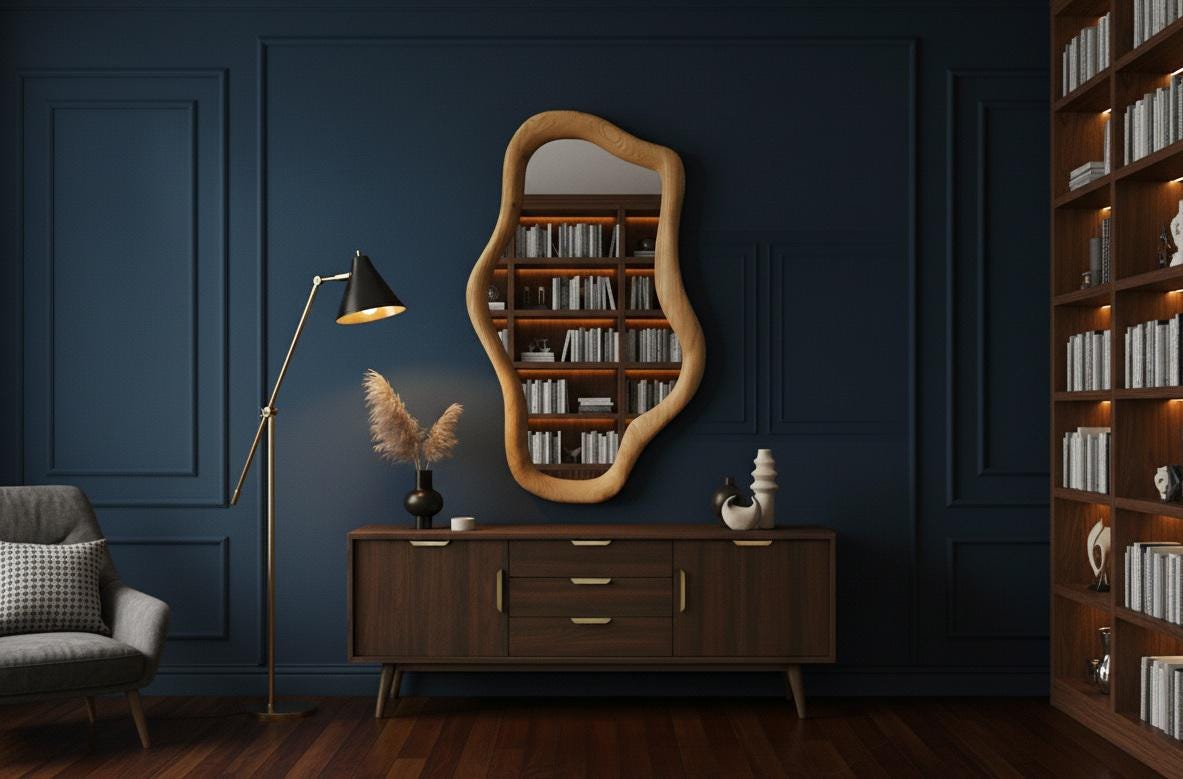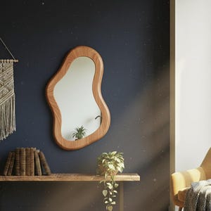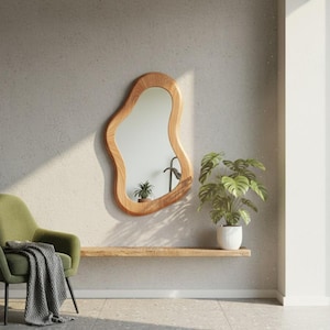 Inspired by the natural curves of stones and tree bark, this handcrafted wooden mirror brings the warmth of nature into your home with its striking organic shape. This mirror is more than just a functional object — it is a design piece that adds character and elegance to any room.