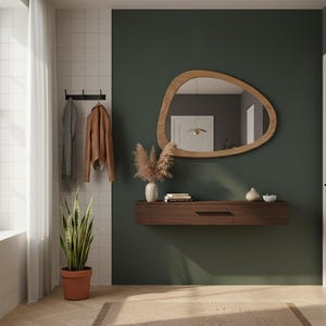Inspired by the natural curves of stones and tree bark, this handcrafted wooden mirror brings the warmth of nature into your home with its striking organic shape. This mirror is more than just a functional object — it is a design piece that adds character and elegance to any room.