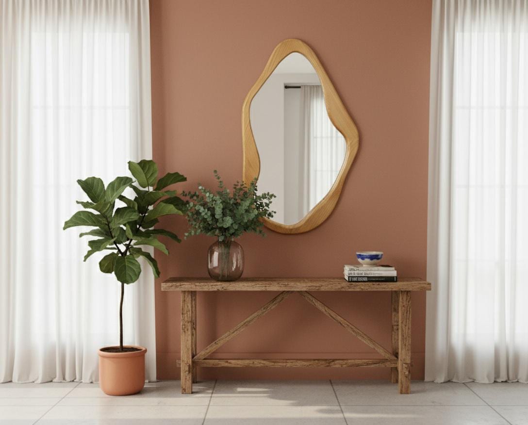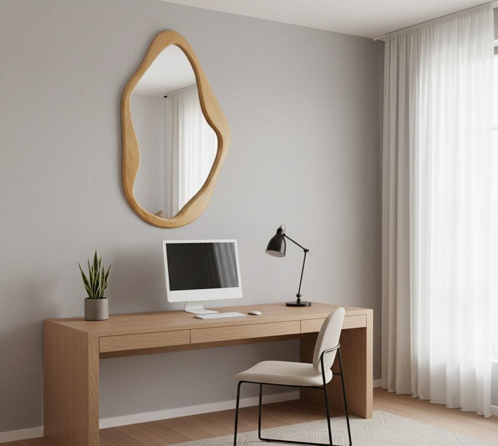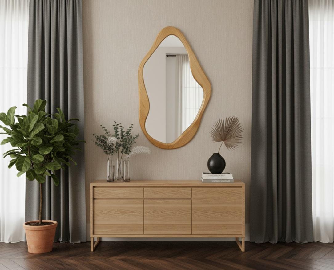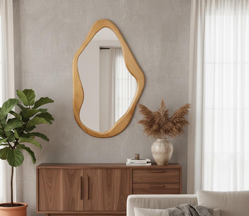 Each mirror is 100% handmade, making every piece truly unique. Its soft curves and asymmetrical design give it a soft, sculptural feel that seamlessly complements modern, rustic, bohemian, or minimalist interiors.
